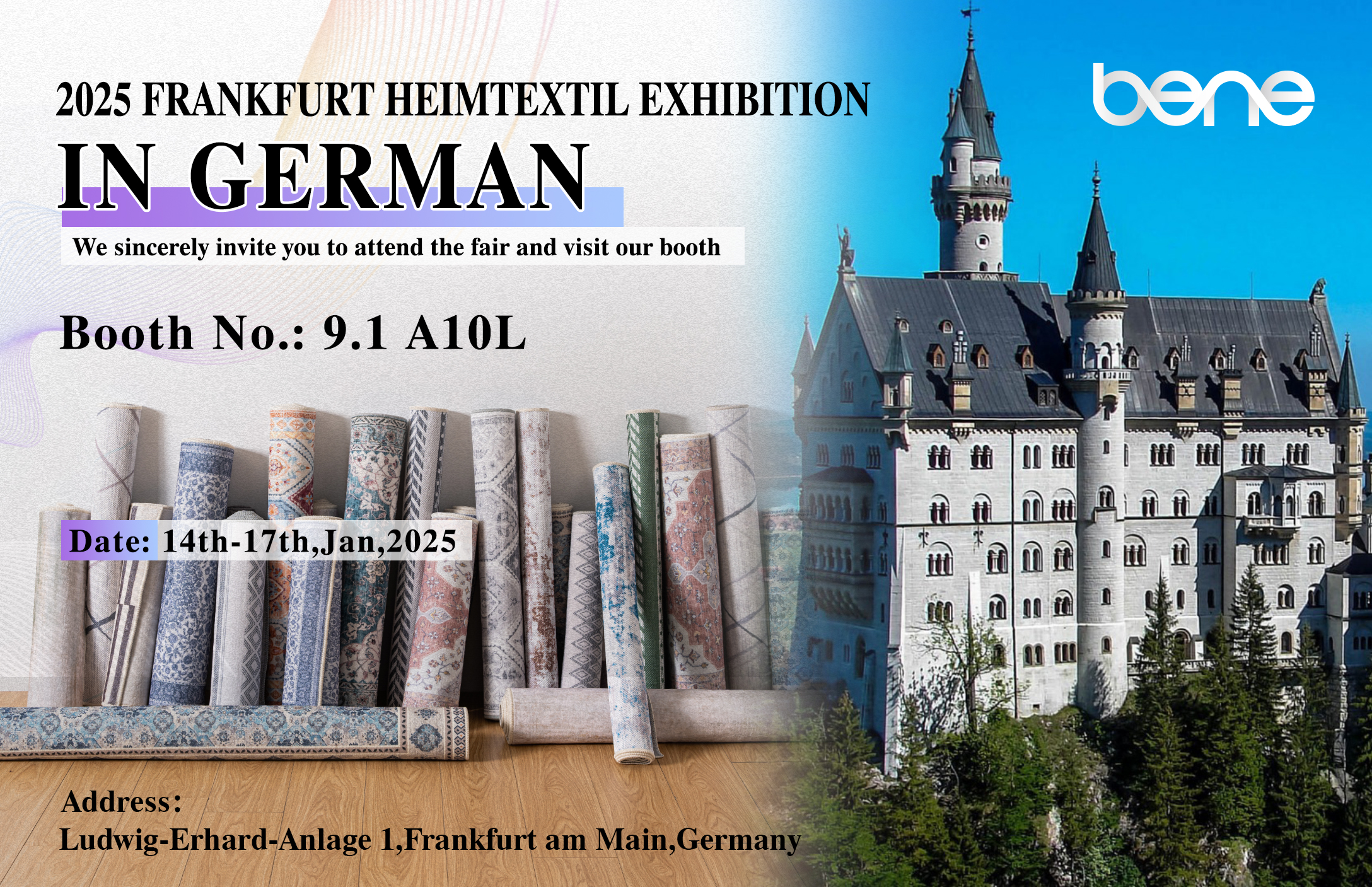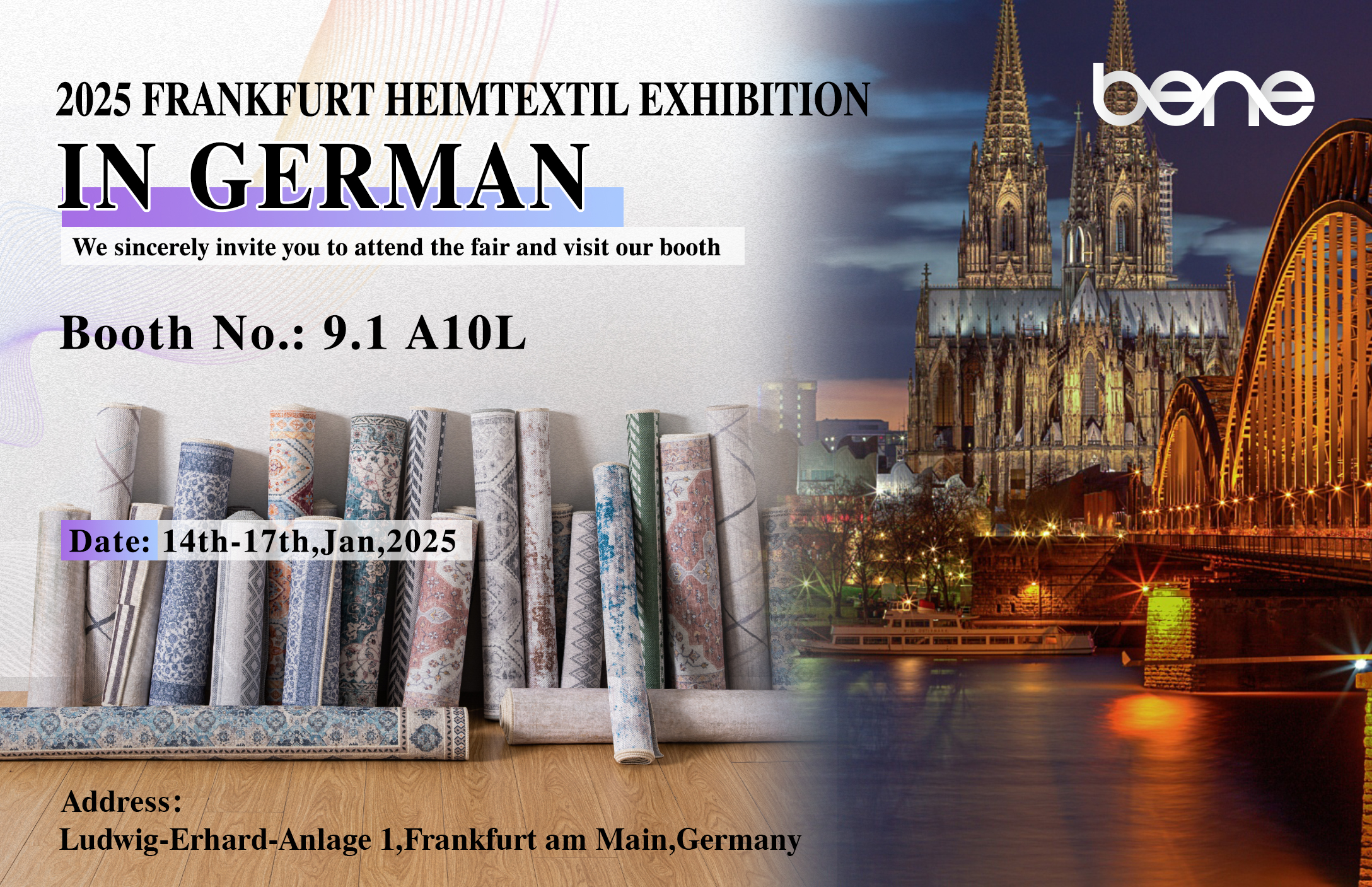 Zhejiang Benyi Textile Technology Co., Ltd., wiodące innowacyjne przedsiębiorstwo tekstylne, ma zaszczyt ogłosić nasz udział w nadchodzącej wystawie Frankfurt Heimtextil w 2025 roku. Wystawa odbędzie się w dniach 14–17 stycznia 2025 r., A my będziemy prezentować nasze najnowsze dywany, tkaniny dywanowe i gotowe produkty na stoisku nr 9.1A10L. Szczerze zapraszamy do odwiedzenia naszego stoiska i omówienia z nami innowacyjnych technologii tekstylnych i trendów branżowych.