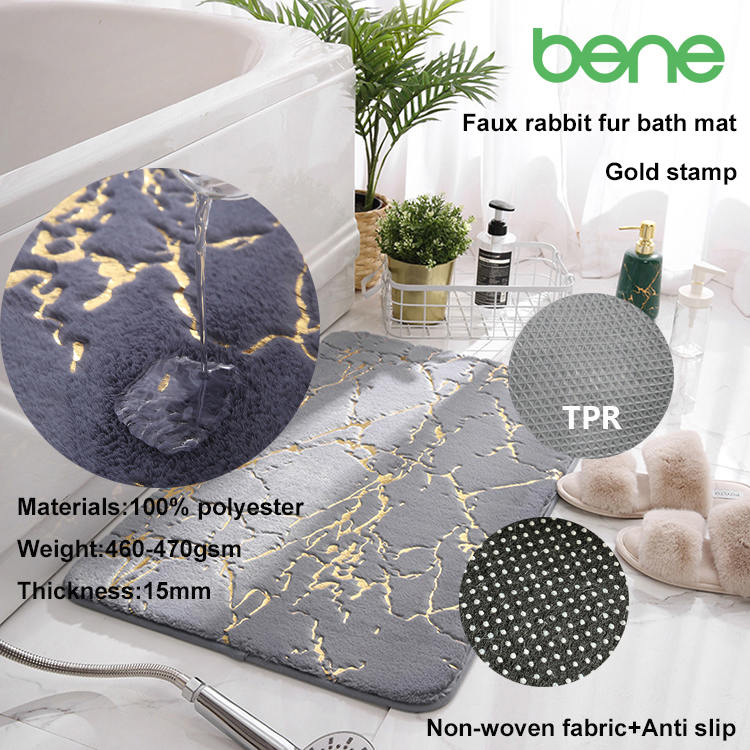 Jeśli chodzi o estetykę, mata ma solidny wzór kolorów z charakterystyczną futrem futra sztucznego królika w połączeniu z eleganckim złotym akcentem folii, dodając odrobinę luksusu do każdego pomieszczenia. Jego specjalne cechy, w tym właściwości inne niż poślizg, miękkość, zdolność do mycia i wchłanianie wody, sprawiają, że jest to zarówno praktyczny, jak i stylowy wybór do zwiększenia przestrzeni.