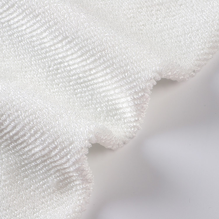 Tkanina jest dostępna w szerokości 170, 190 i 210 cm lub dostosowana do twoich potrzeb. Jego wysokość stosu waha się od 2,5 do 3 mm, oferując miękką, pluszową konsystencję, która jest zarówno wygodna, jak i praktyczna. Używamy dzianiny dla elastycznej i odpornej struktury, dzięki czemu jest idealna do różnych zastosowań.