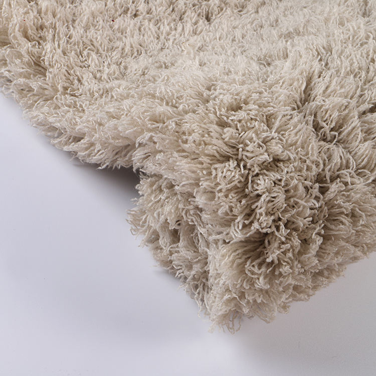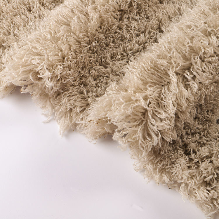 Piękna aksamitna tkanina do maty do kąpieli ma znaczną wagę 400 gSm, zapewniając trwałość bez uszczerbku dla jej pluszowego wyczucia. Z dużą wysokością stosu 30 mm, zapewnia luksusową kudłą konsystencję, która poprawia dotychczasowe wrażenia, co czyni ją idealną do zwiększenia atmosfery łazienki, jak i przestrzeni mieszkalnych.