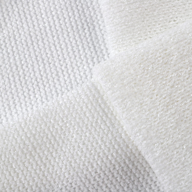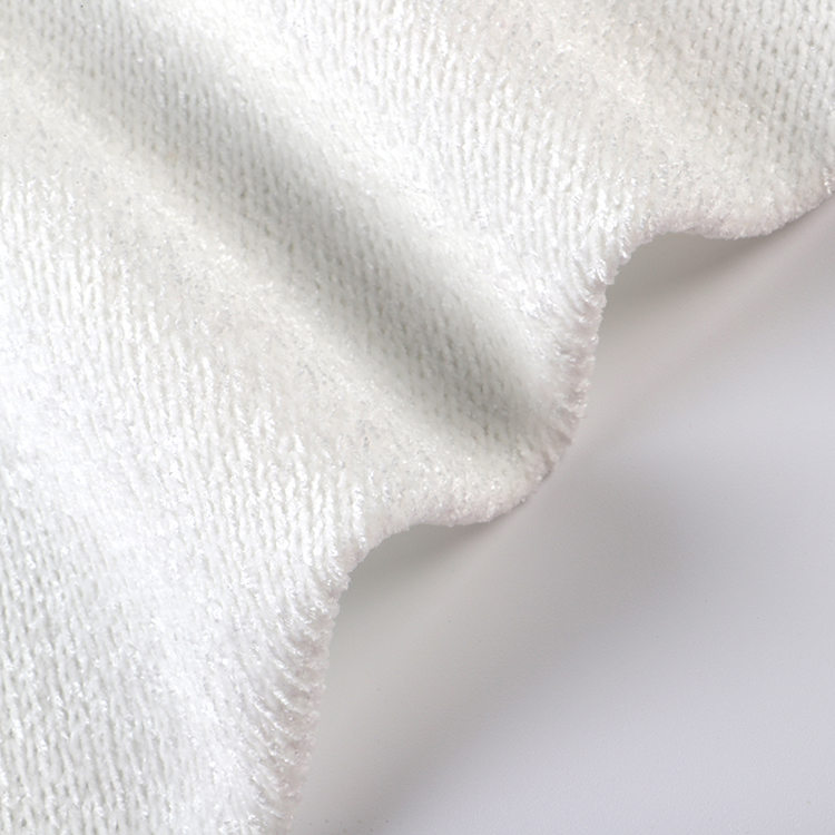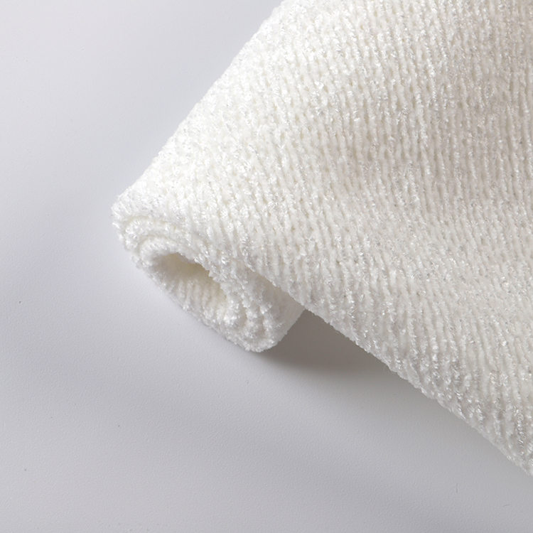 Nasza gładka tkanina Chenille jest w nieskazitelnym białym kolorze PFP, dodając do twoich produktów czysty i wyrafinowany wygląd. Przy minimalnej ilości rzędu 500 kg na kolor, zaspokajamy wydajne potrzeby produkcji na dużą skalę. Tkanina jest pakowana przez bułki, ułatwiając łatwą obsługę i przechowywanie.
